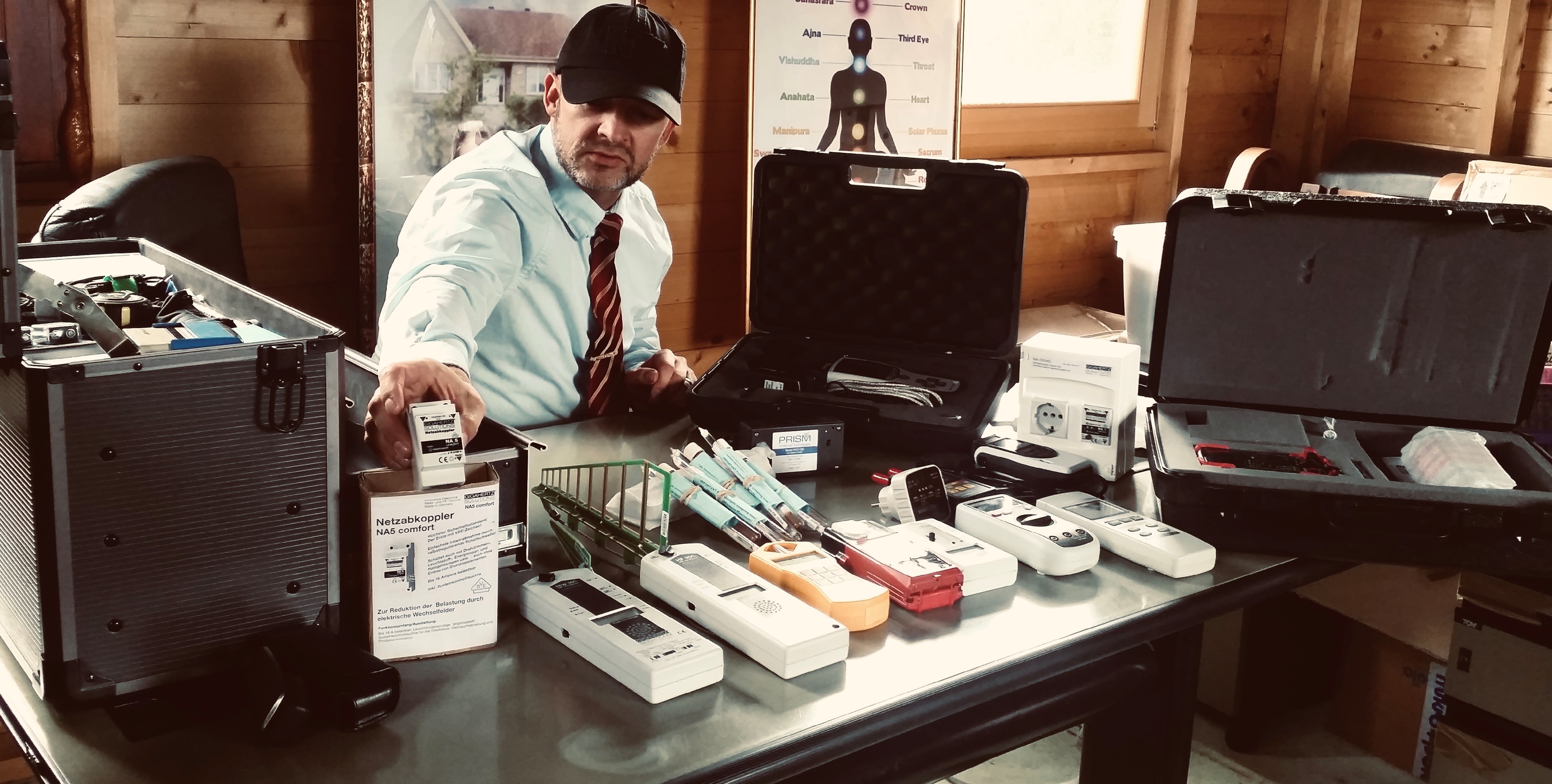 We had a visit from building biologist, who measures the level of electric and magnetic fields and high-frequency radiation, including wireless technology in living and working environments, taking into account scientific knowledge and a holistic approach, as well as the so-called precautionary principle.