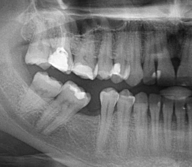 patient had his bottom six removed years ago. The teeth had become misaligned