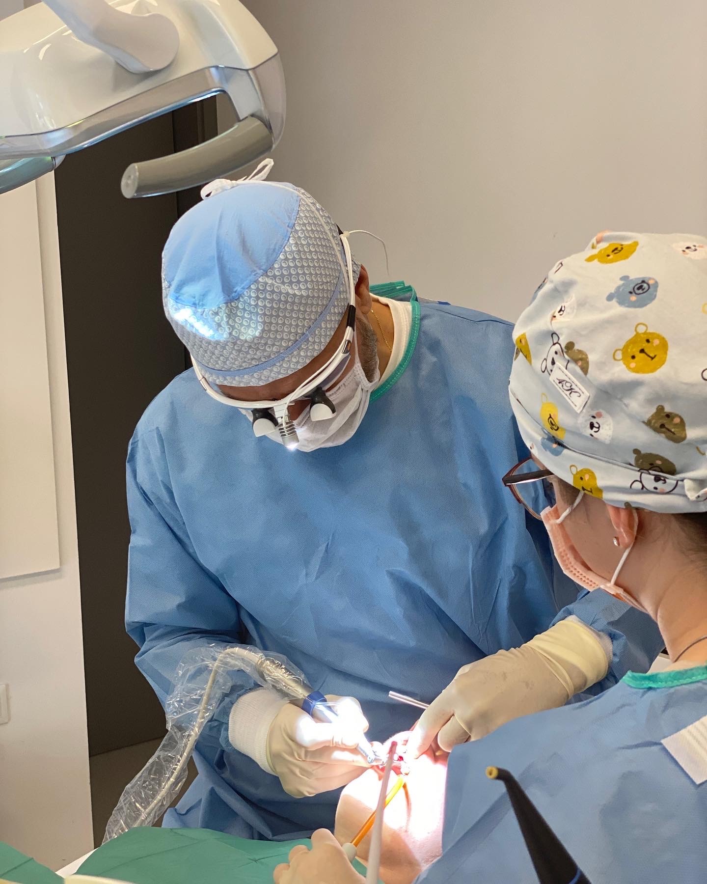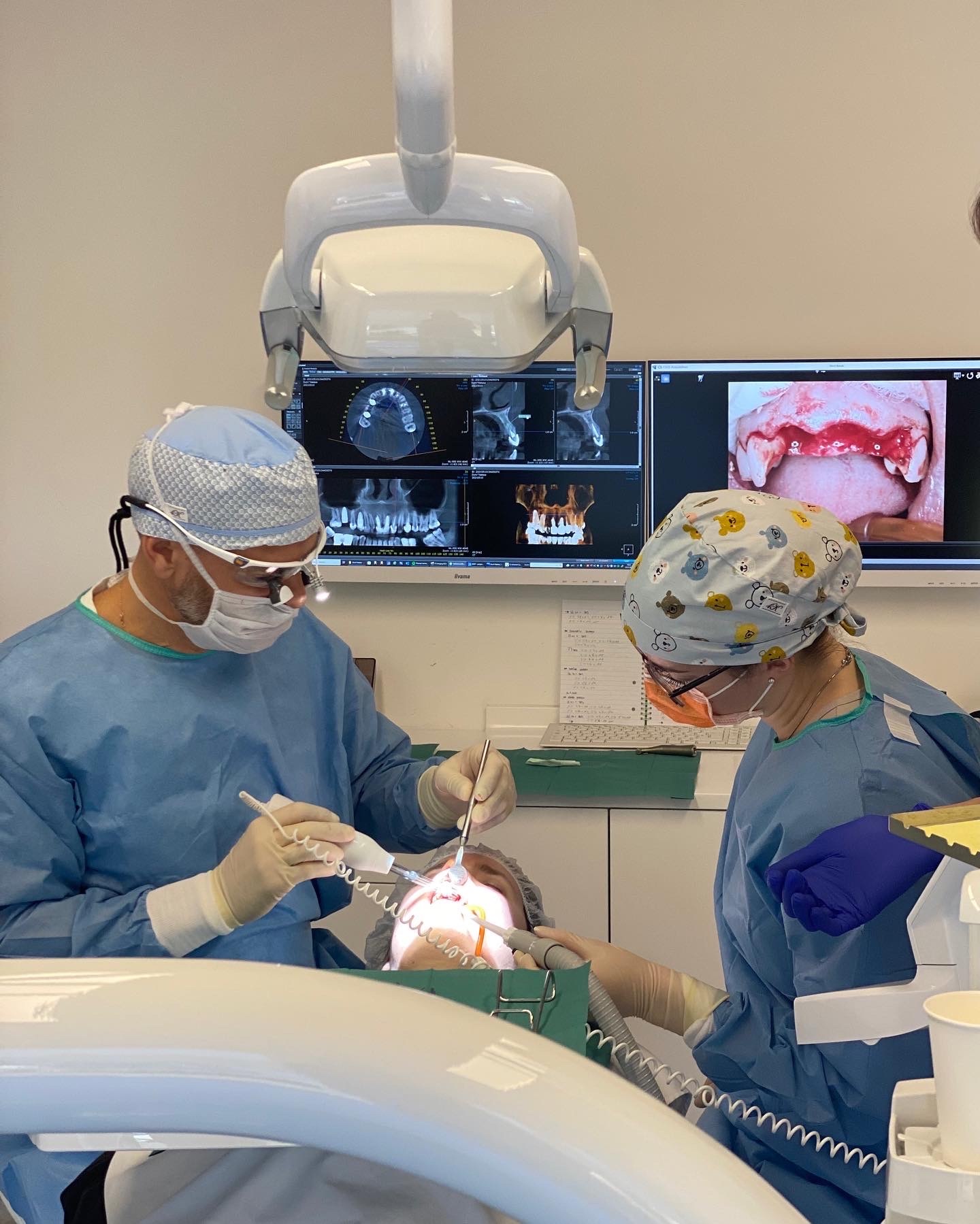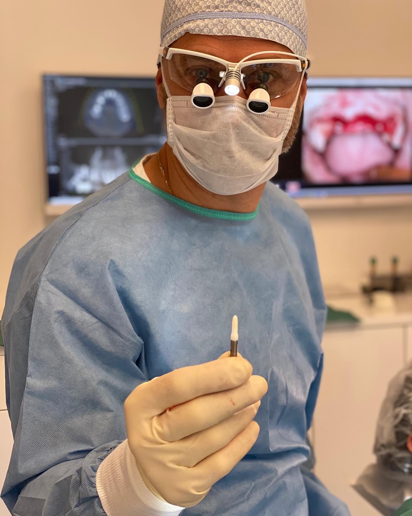 The patient immediately had three @swissdentalsolutions ceramic implants placed and provisional crowns on top of these. During the procedure, when the teeth were removed, the patient already felt relief.