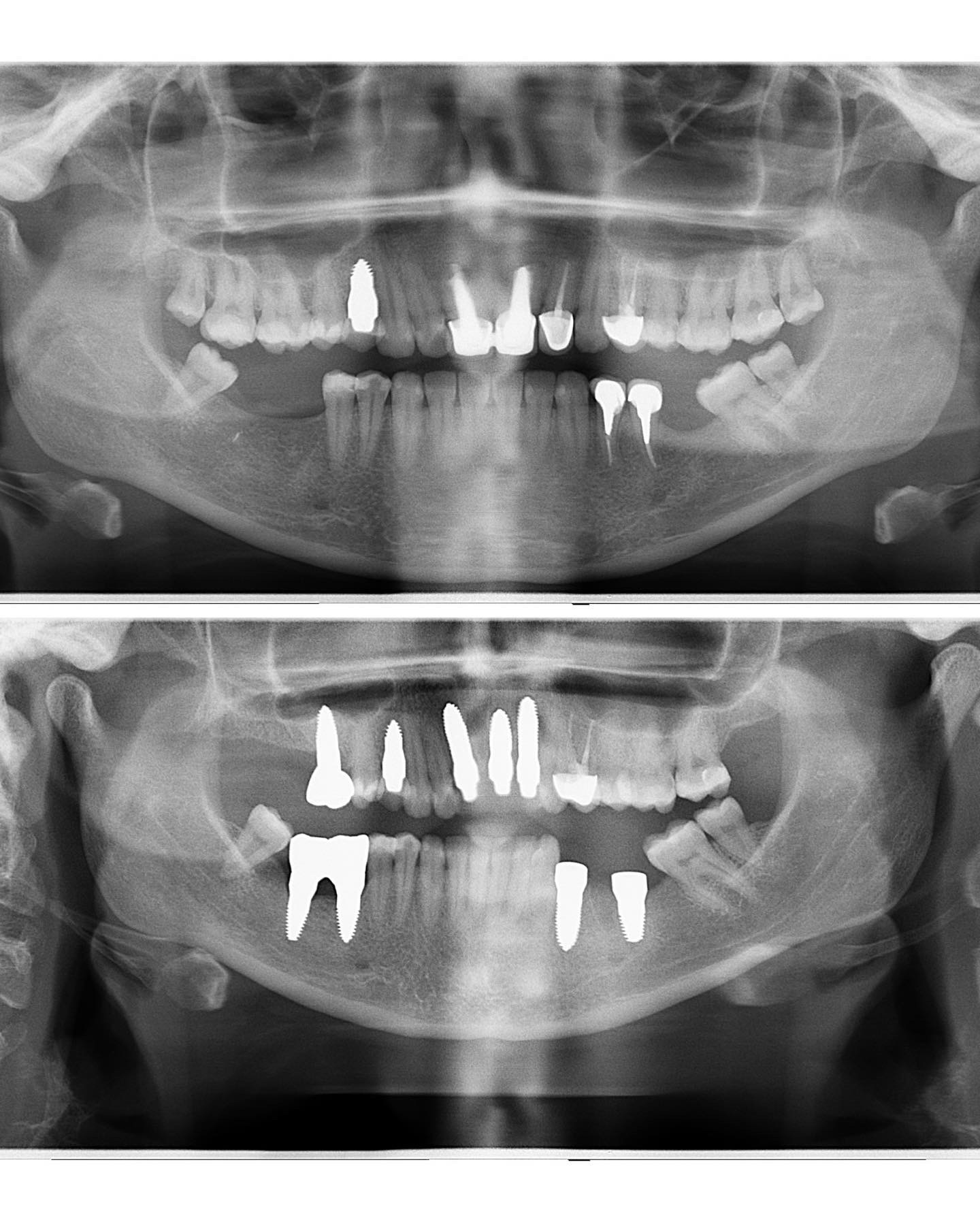 This connection was shown again with our patient in whom, due to tooth damage at a young age, after the previous removal of three nerves on the front teeth, coatings were installed. However, when we removed the veneers and removed the teeth, we detected very black roots that indicate completely rotten teeth.