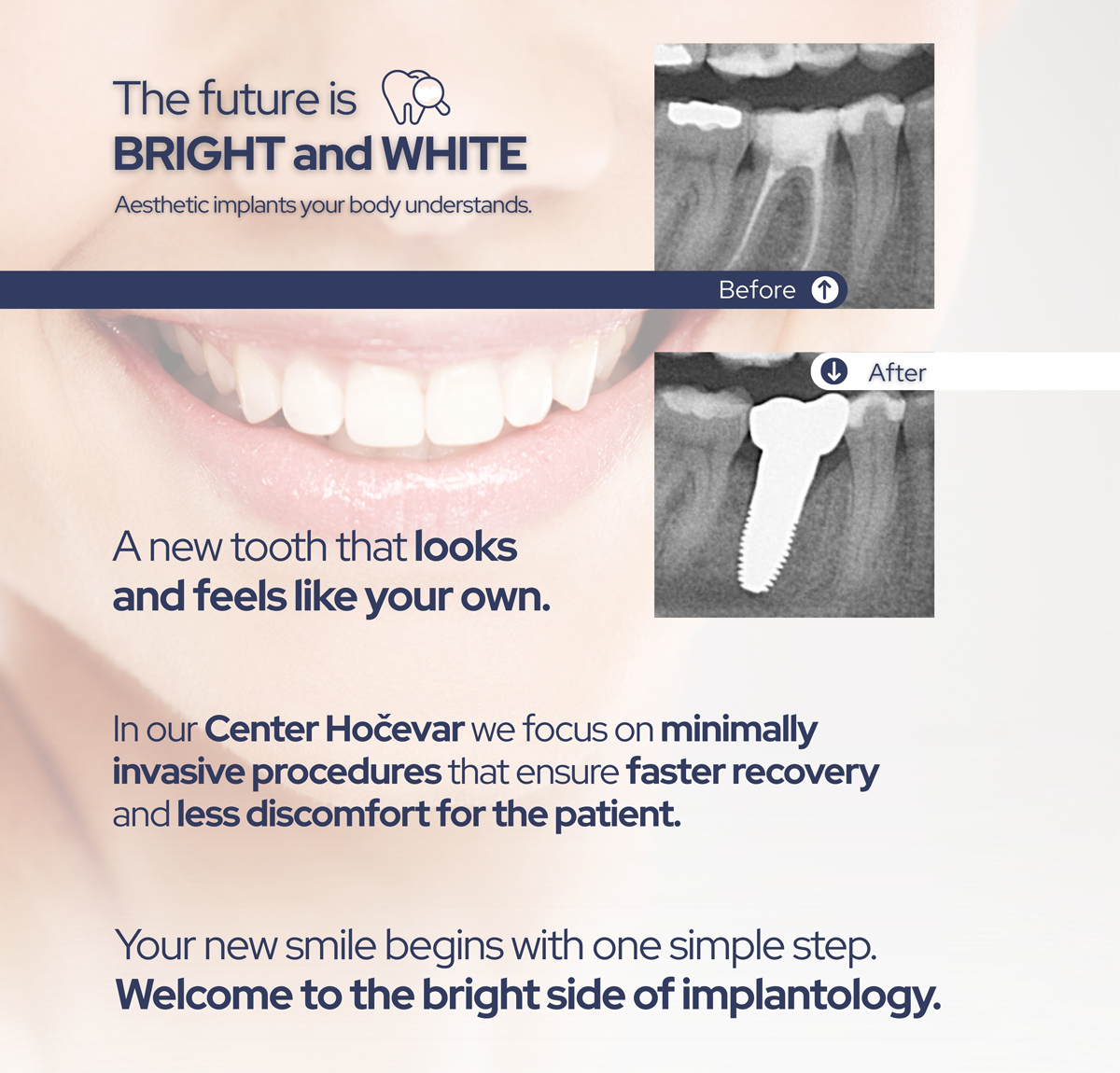 At Center Hočevar, we prioritize minimally invasive procedures that support natural healing processes, enabling faster recovery and reduced post-operative discomfort. Our focus goes beyond creating beautiful smiles—we aim to establish the foundation for long-term oral and overall health.
